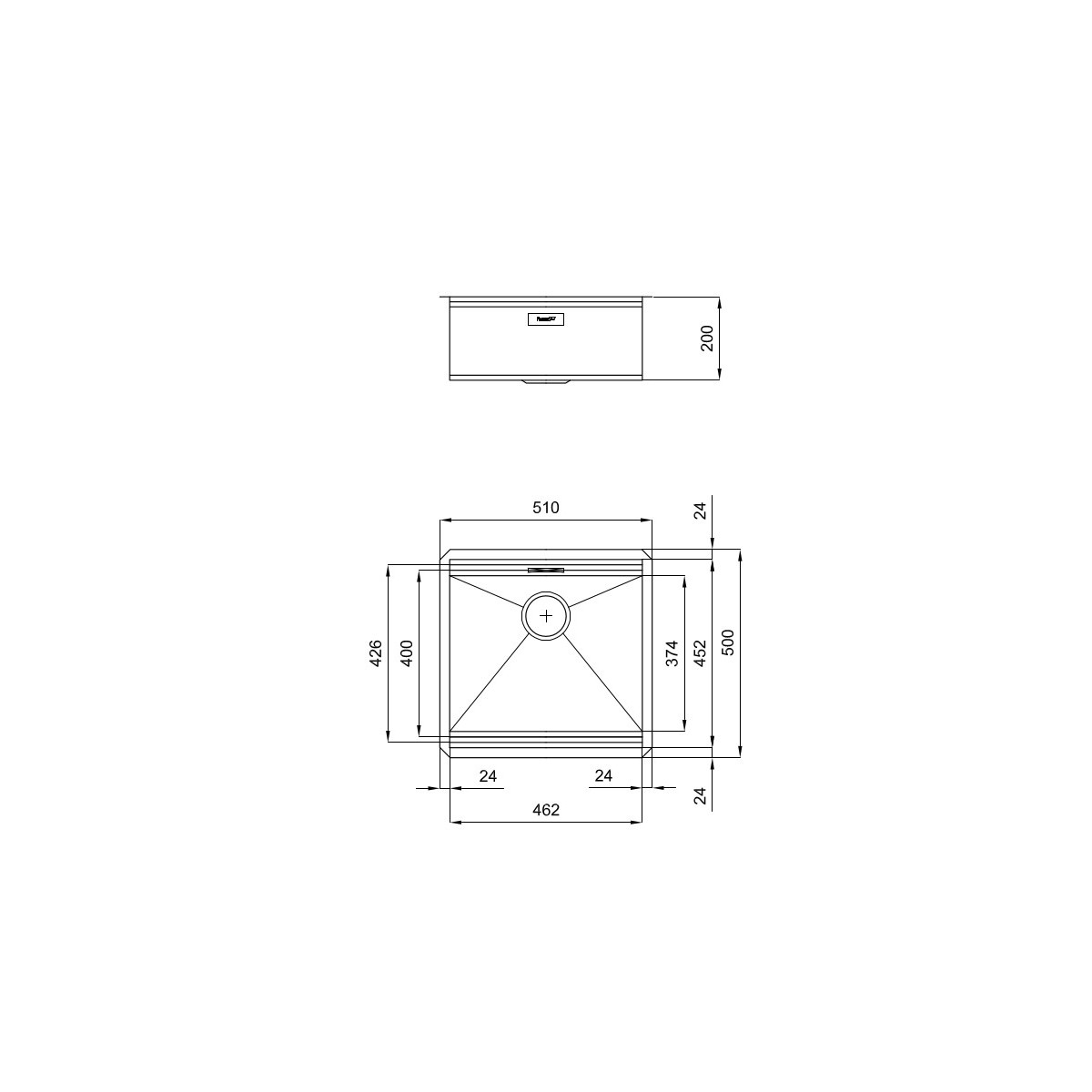 Lavello Milano Sottotop Materiale Finitura: Acciaio inox AISI 304 - finitura spazzolato Base: 60 cm Dimensioni: 510x500 mm Bordo Installazione: Sottotop (ST) Foro incasso: 462x452 mm Numero Vasche: 1 vasca Misura Vasca: 462x400 mm Piletta: piletta 3,5" Fori Mixer: Nessun foro di serie Dotazioni standard: ganci di fissaggio, guarnizione, piletta, troppo-pieno e sifone, Imballo in scatola
