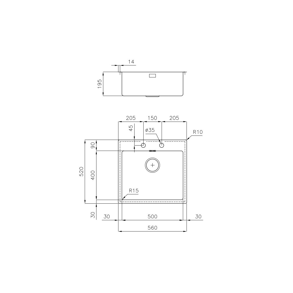 Foster 2265 050 - Lavello KE Filotop, 1 Vasca, 56 x 52 cm, Acciaio Inox