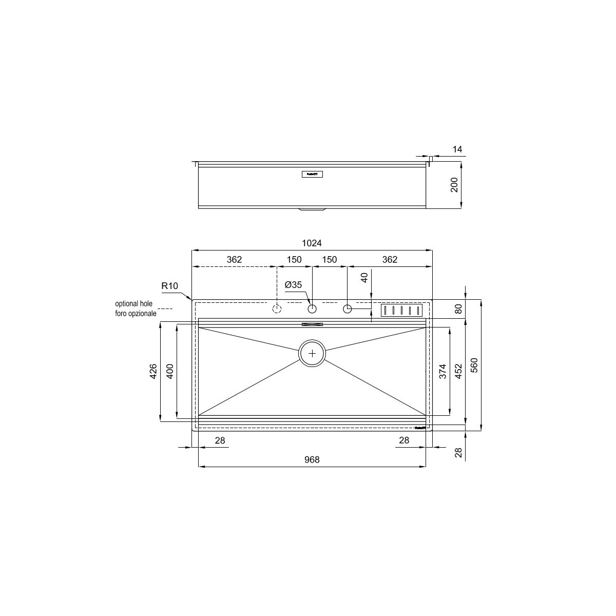 Foster 1017 055 - Lavello Milano Filotop | FTS, 1 Vasca, 102.4 x 56 cm, Acciaio Inox