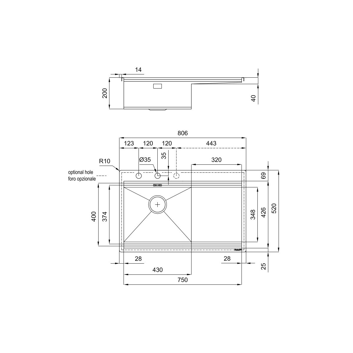 | Fori Mixer | 2 fori di serie - 3° foro su richiesta |
