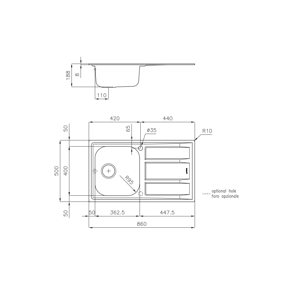 | Misura vasca | 362,5x400 mm |