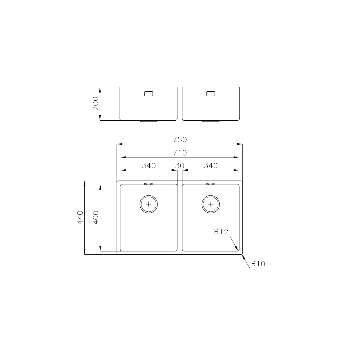 Foster 3352 050 - Lavello Filotop S4001, 2 Vasche, 75 x 44 cm, Acciaio Inox