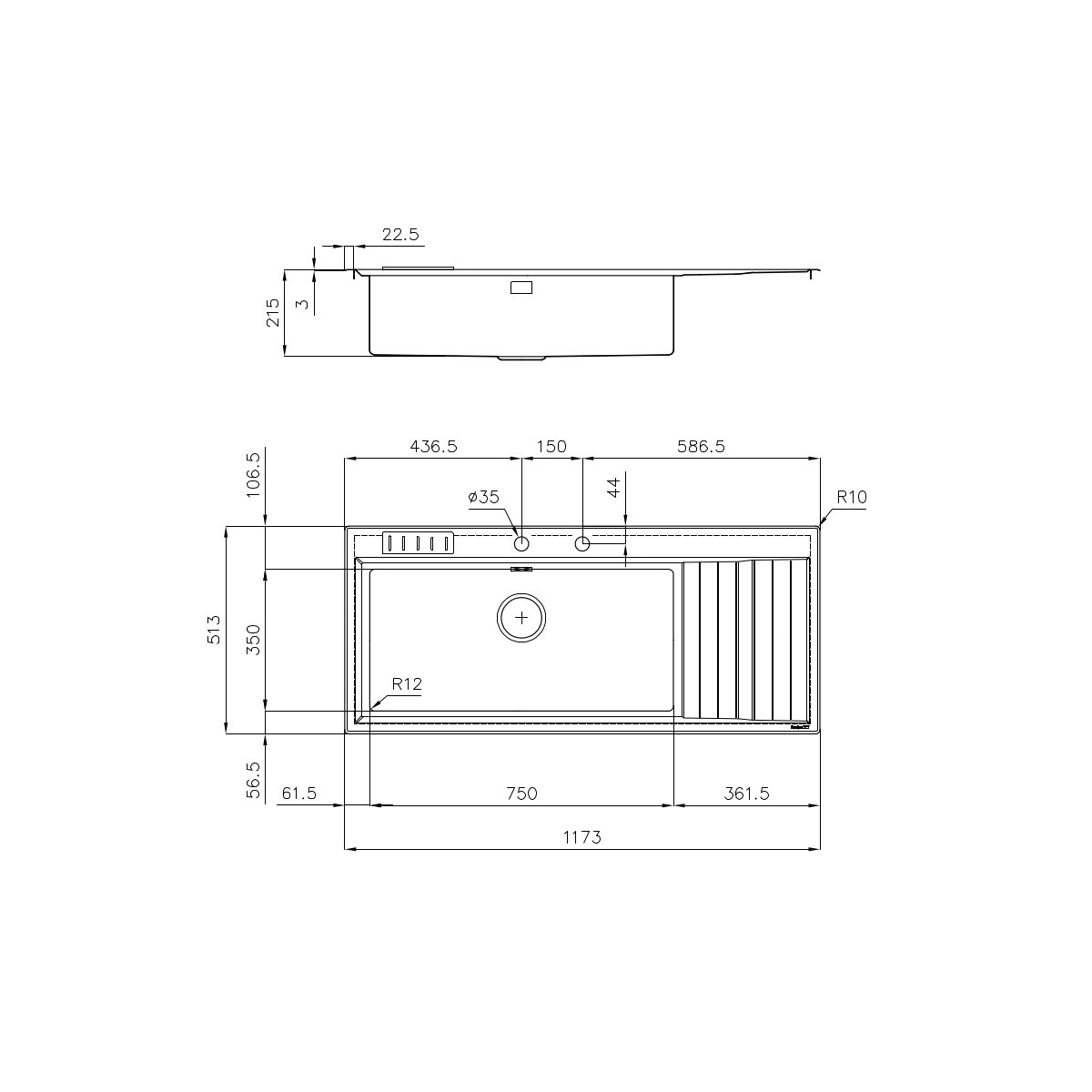 | Foro incasso | 1140x480 mm |
