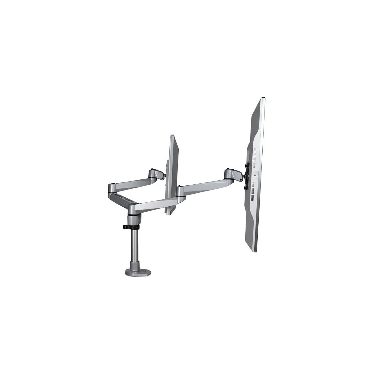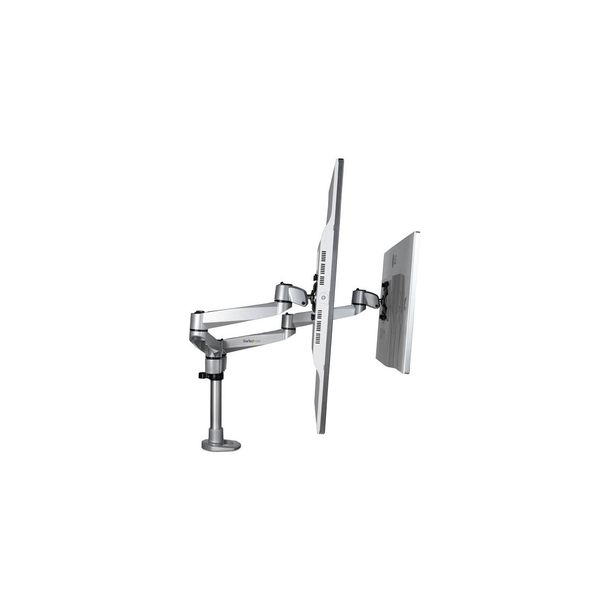 StarTech.com Supporto per Doppio Monitor da Scrivania - Articolabile - Premium. Montaggio: Morsa, Peso massimo (capacità): 10 kg, Capienza minima dimensioni dello schermo: 33 cm (13"), Capienza massima dimensioni dello schermo: 68,6 cm (27"), Compatibilità interfaccia di montaggio (min): 75 x 75 mm, Compatibilità interfaccia di montaggio (max): 100 x 100 mm. Inclinazione: -15 - 90°. Colore del prodotto: Argento