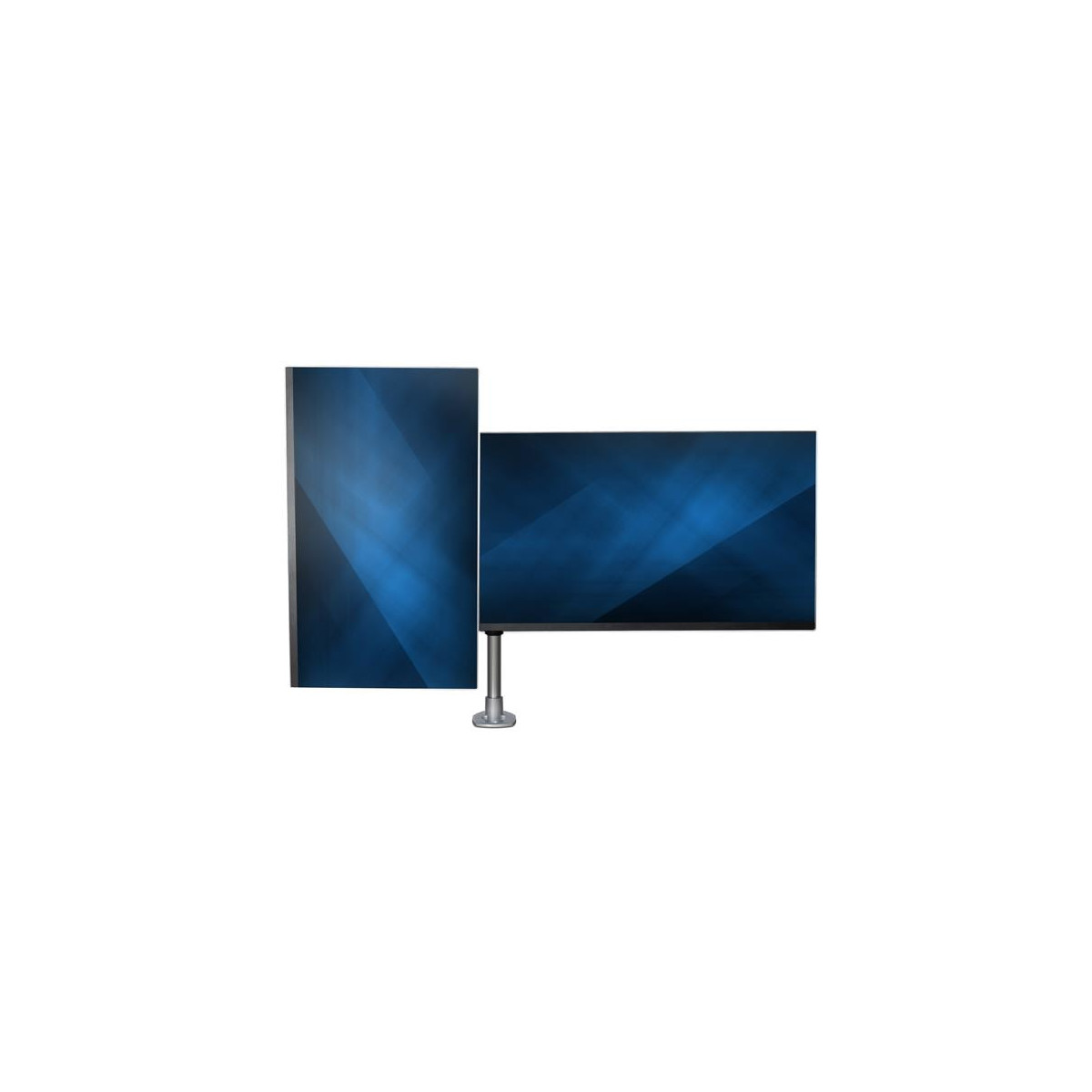 Il morsetto da tavolo e l'asta completamente assemblati, insieme ai collegamenti a scorrimento e scatto rapidi, garantiscono un facile assemblaggio. Consente inoltre di risparmiare tempo durante la configurazione di più unità. Il supporto per doppio schermo offre la possibilità di scegliere tra morsetto da scrivania o foro passacavo (hardware incluso).