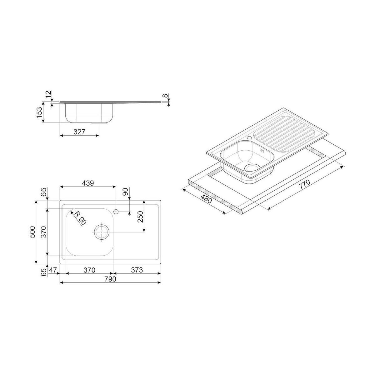 Smeg LYP791D - Lavello da Cucina, 1 Vasca, Gocciolatoio a Destra, 79 cm, Rettangolare, Acciaio