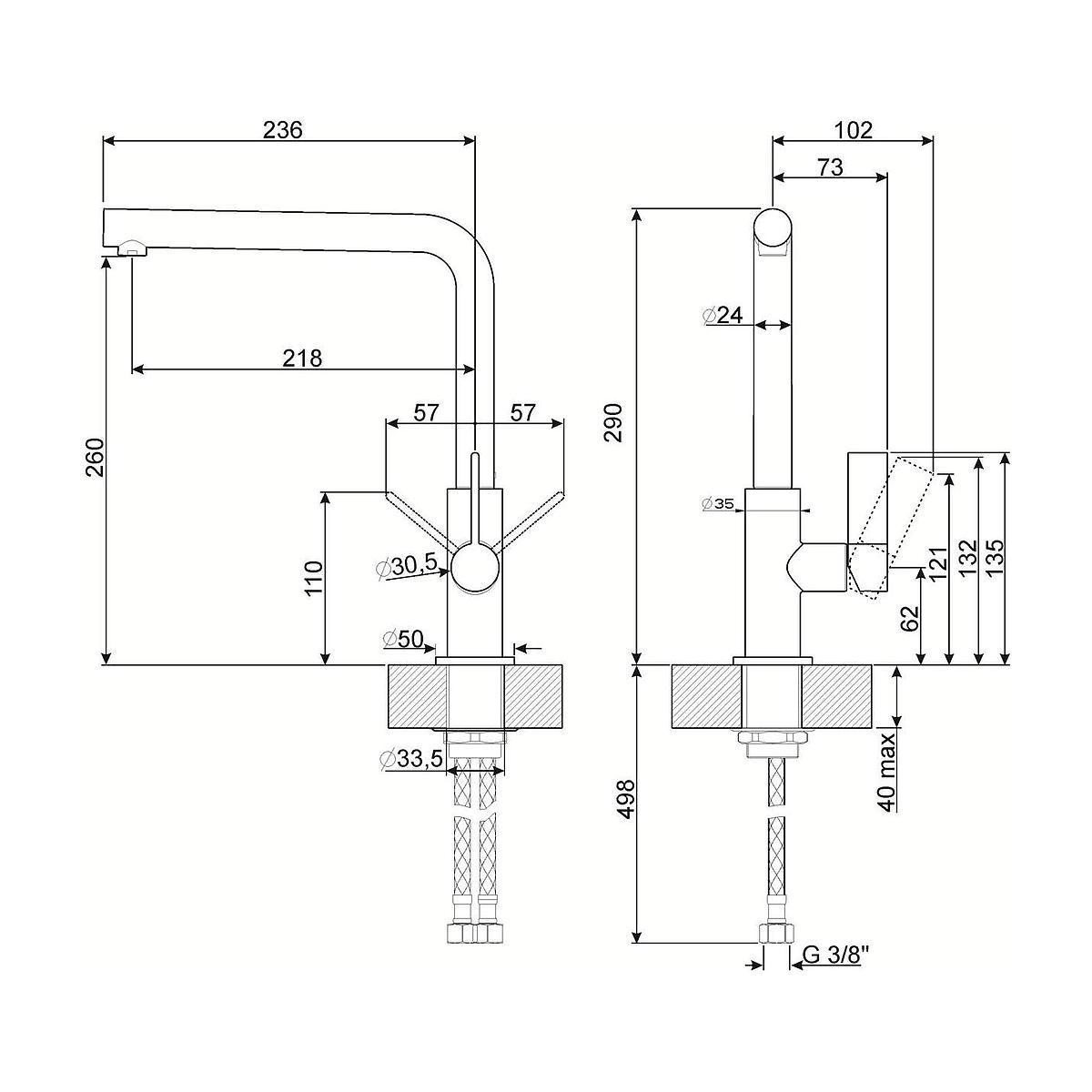 | Distanza tra foro di fissaggio e diffusore acqua | 21,8 cm |