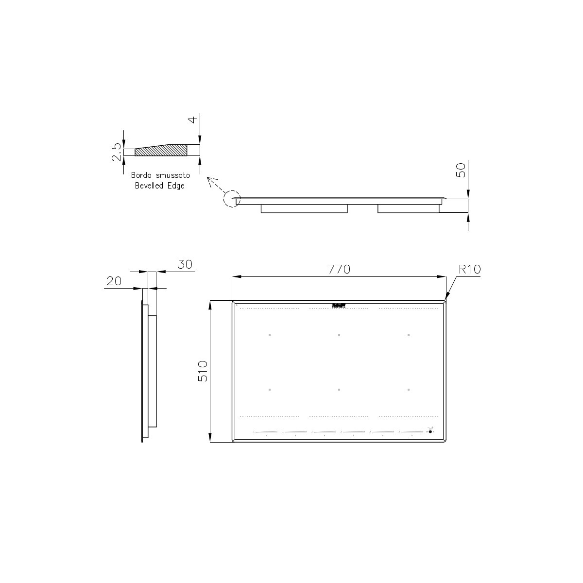 Piani Cottura a Induzione KE, Colorazione Nero, Materiale Vetroceramica, Bordo Installazione Bordo bisellato - per installazione a filo piano o per incasso sopratop, Dimensioni 770x510 mm