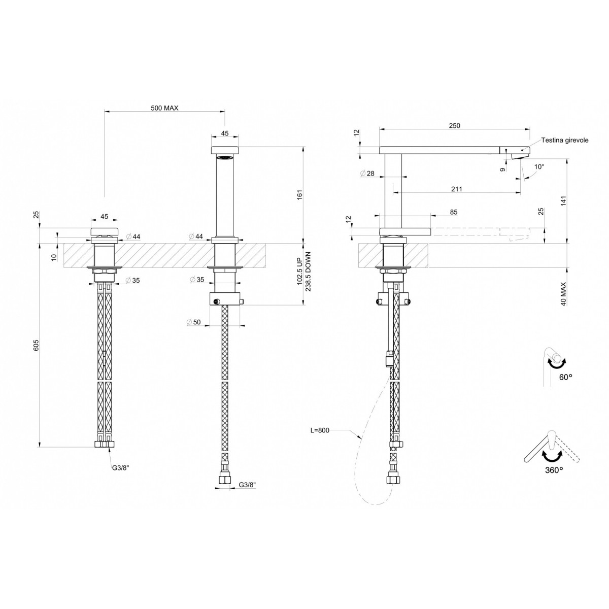 Miscelatori Eclipse, Materiale Ottone, Texture Cromato, Angolo di rotazione 360°, Base d'appoggio Ø44 mm