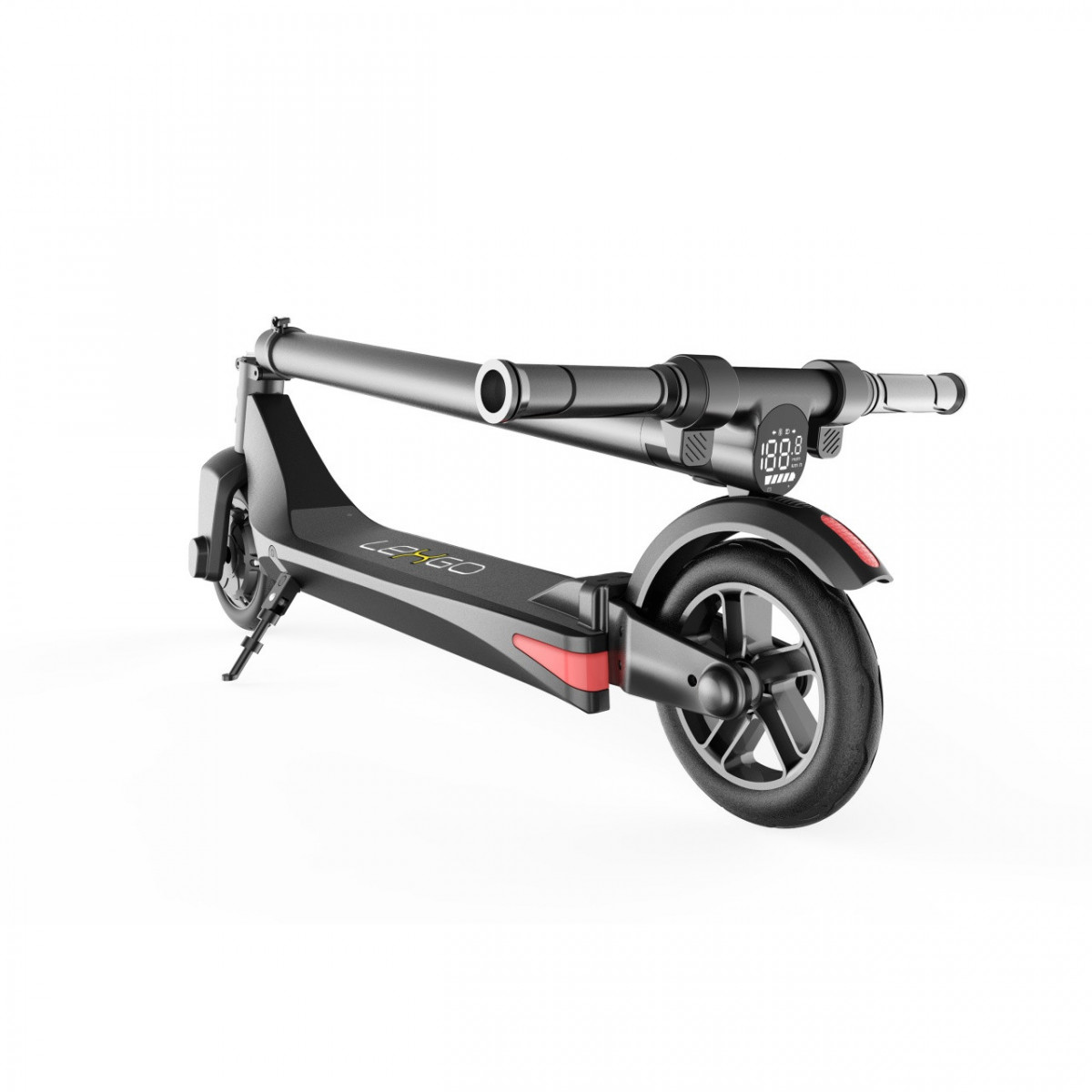 Lexgo P-8A. Tipo: Monopattino classico, Velocità massima: 22 km/h, Capacità massima di carico: 100 kg. Capacità della batteria: 5000 mAh, Potenza motore: 250 W, Voltaggio della batteria: 36 V. Larghezza: 420 mm, Profondità: 1009 mm, Altezza: 1079 mm