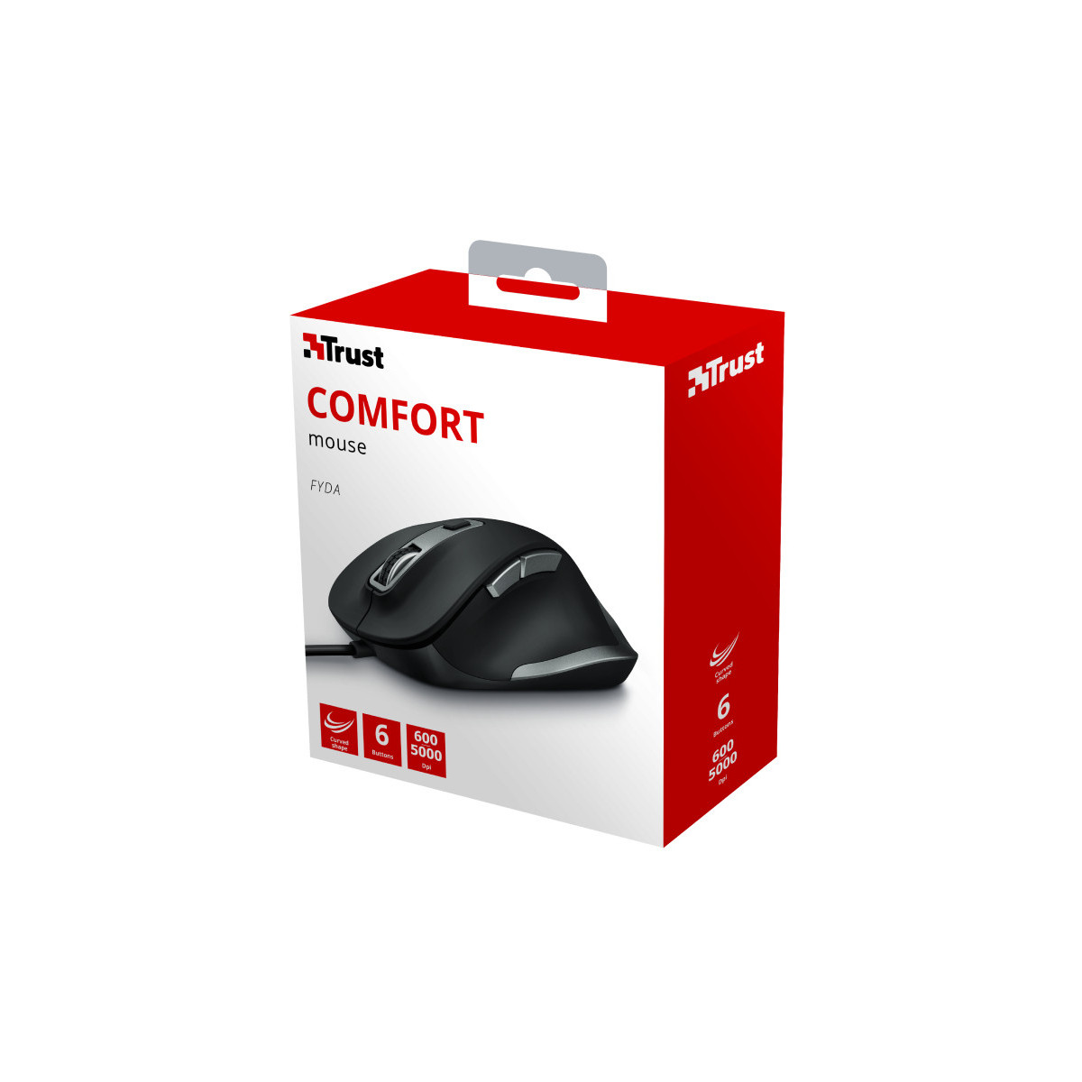 Con il comodo design curvo ed ergonomico, i sei pulsanti facilmente accessibili e DPI regolabili, il mouse a filo Trust Fyda ti garantisce grande produttività senza stress. La forma scultorea e la base d'appoggio per il pollice del mouse Fyda ti permettono di lavorare per tutto il giorno senza affaticare la mano.