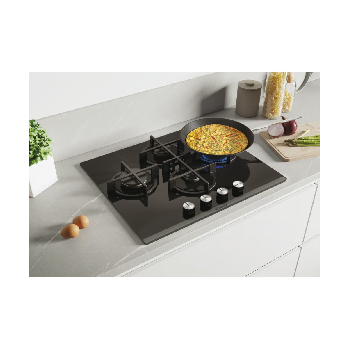 Candy CVG6DEB - Piano Cottura a Gas, Nero, 59.5 cm, 4 Fornello(i)