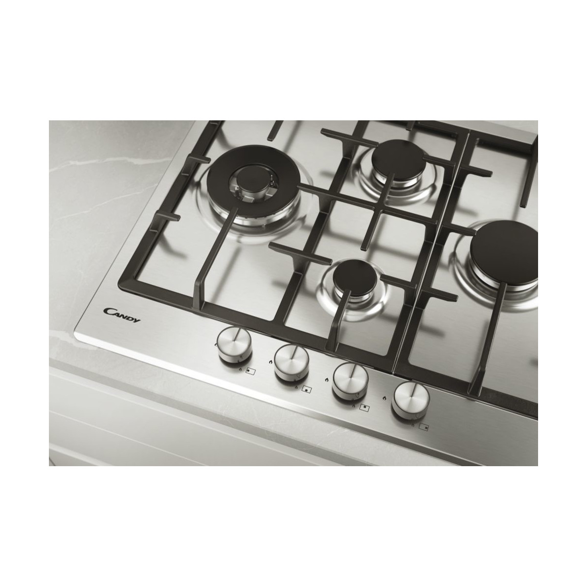 Candy CHG6DWEX - Piano Cottura a Gas, Acciaio Inossidabile, 59.5 cm, 4 Fornello(i)