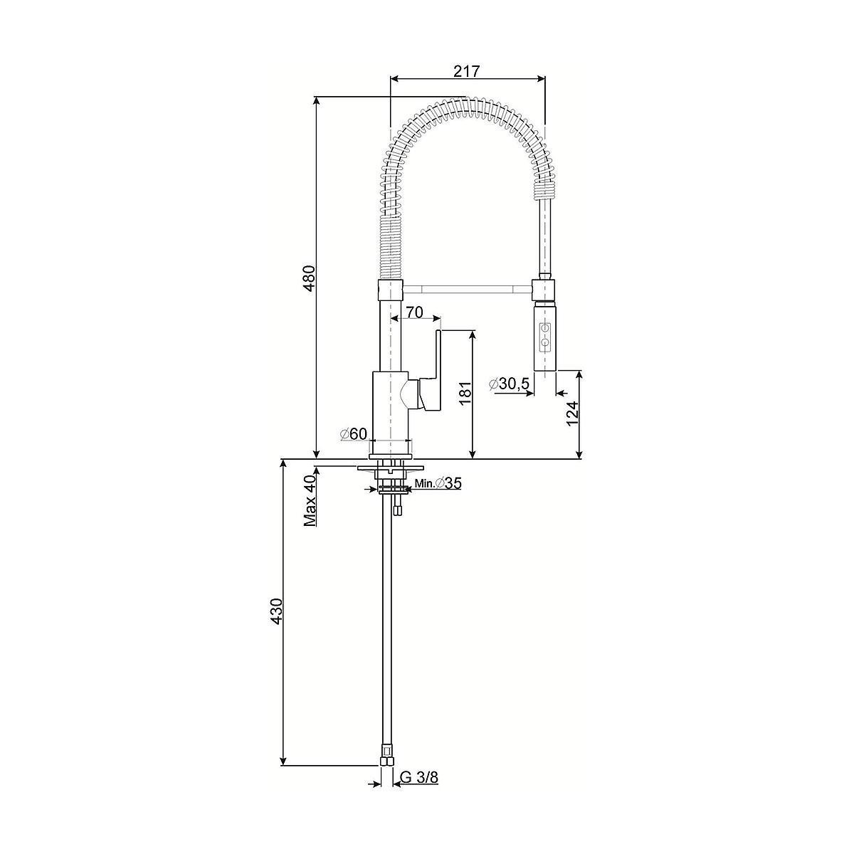 | Distanza tra foro di fissaggio e diffusore acqua | 21,7 cm |