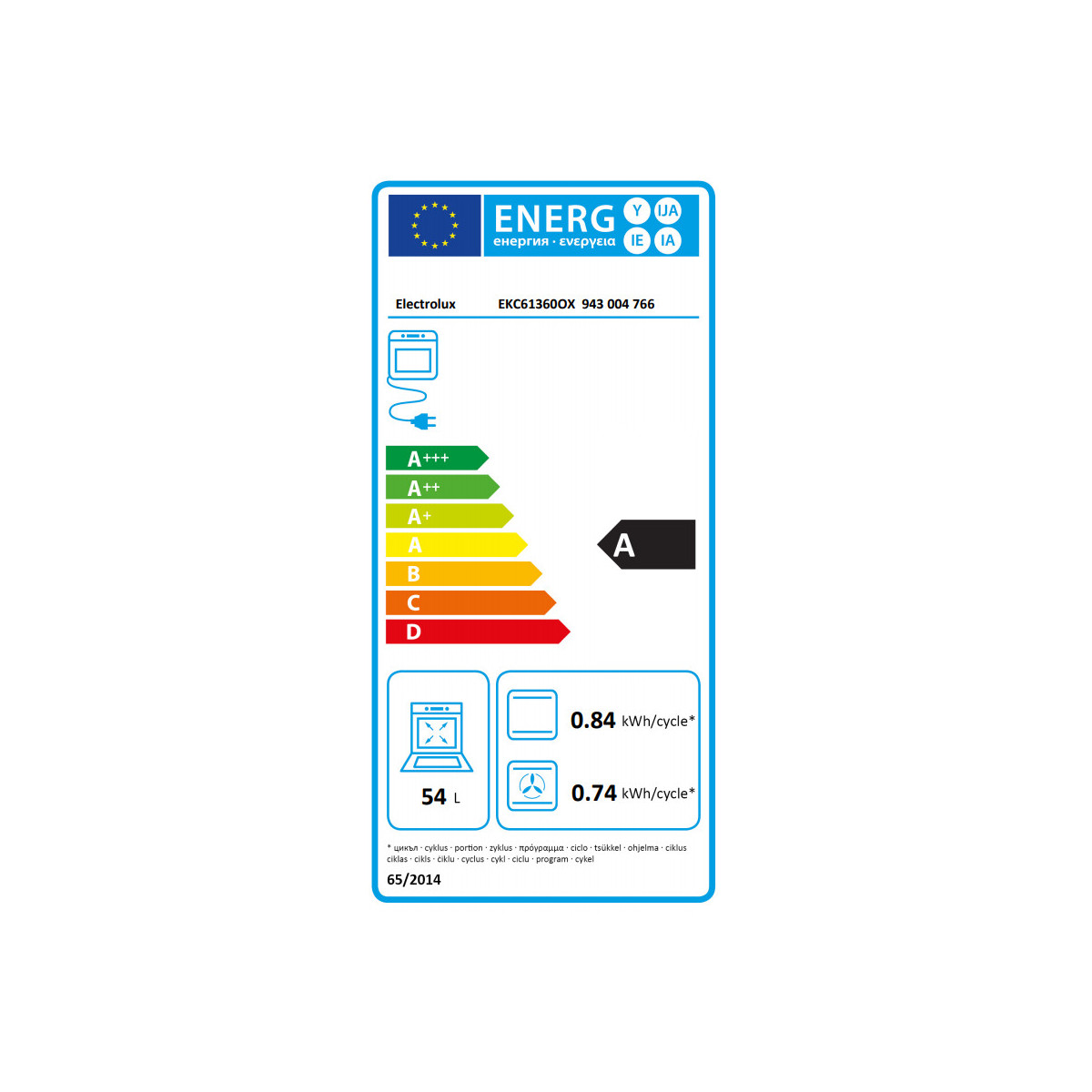 | Capacità netta del forno | 54 L |