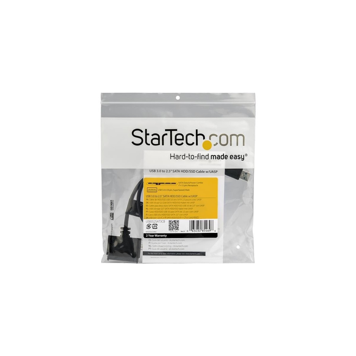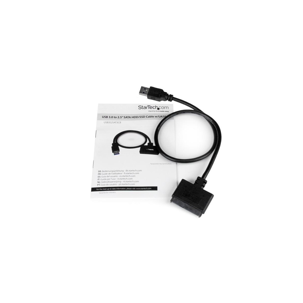 StarTech.com Cavo Adattatore per dischi rigidi USB 3.0 a SATA III da 2.5`` con UASP - Convertitore Sata SSD/HDD. Connettore 1: USB 3.0 A, Connettore 2: SATA 7+15 pin, Genere di connettore: Maschio/Femmina, Lunghezza cavo: 0,5 m. Colore del prodotto: Nero