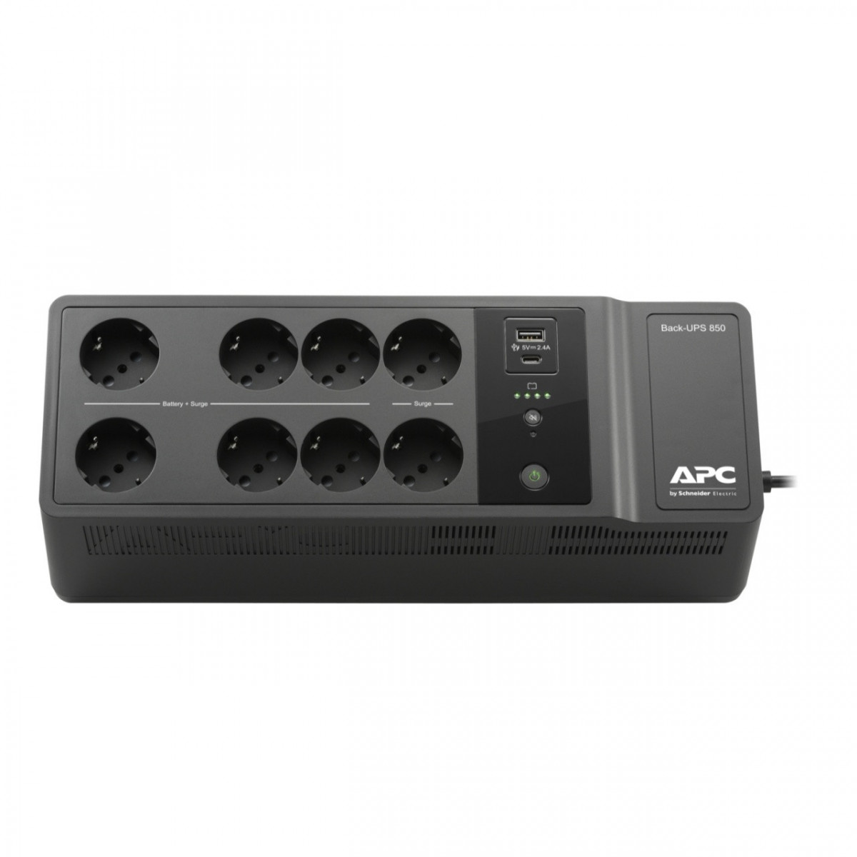 APC BE850G2-IT. Topologia UPS: Standby (Offline), Potenza in uscita: 850 VA, Potenza in uscita: 520 W. Tipo di porta USB: USB tipo-C, Tecnologia di cablaggio: 10/100Base-T. Durata della batteria (max): 5 anno/i, Tempo di ricarica: 16 h. Fattore di forma: Compatta, Colore del prodotto: Nero, Lunghezza cavo: 1,83 m. Larghezza: 130 mm, Profondità: 365 mm, Altezza: 120 mm