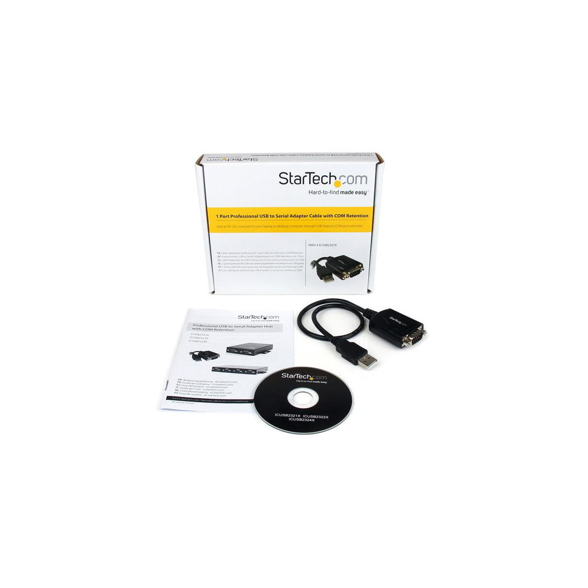 StarTech.com Cavo Adattatore USB 2.0 a Seriale RS232 DB9 con interfaccia COM - Adattatore professionale USB a DB9 / RS232 ad 1 porta. Connettore 1: DB-9, Connettore 2: USB 2.0 A, Genere di connettore: Maschio/Maschio, Lunghezza cavo: 0,42 m. Colore del prodotto: Nero