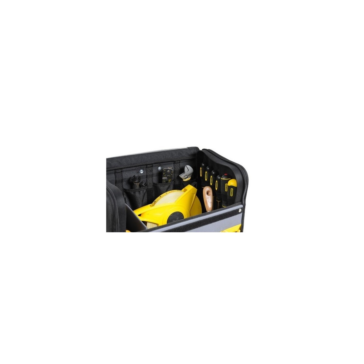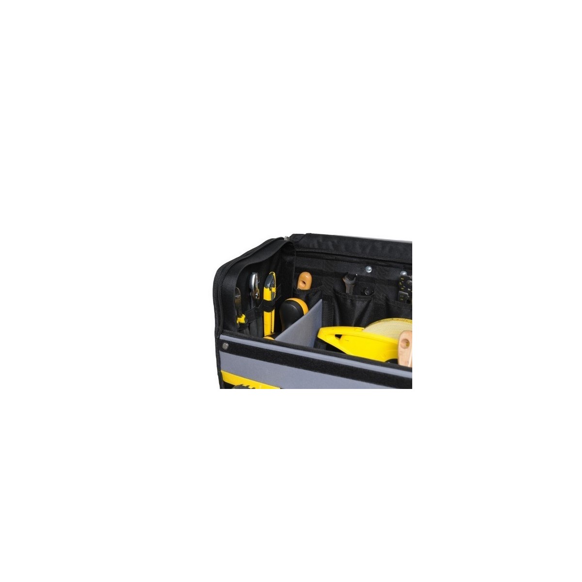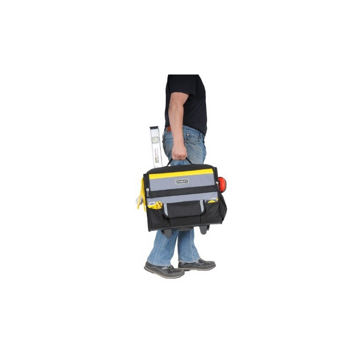 Trolley STANLEY portautensili. Struttura rigida in nylon 600x600 Den, durevole e robusto. Alloggiamenti per utensili elettrici e utensili manuali. Tasca porta documenti. Separatore interno, permette una migliore organizzazione dello spazio. Maniglione telescopico per il trasporto. 4 tasche interne e elastici.