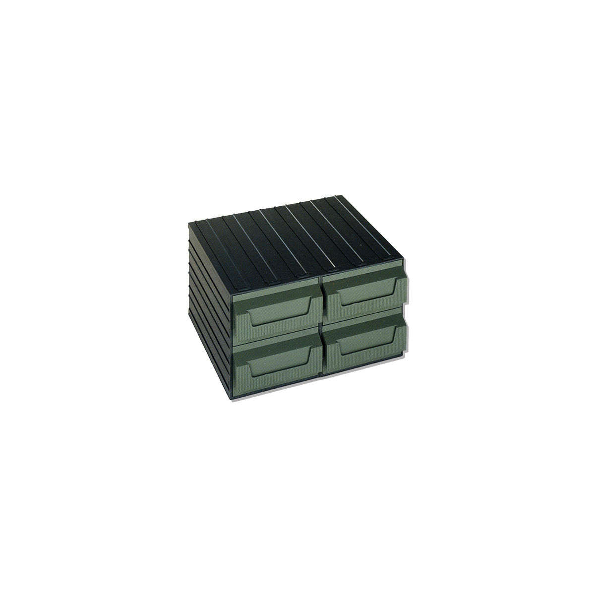 Cassettiera 4 modulare con portaettichette frontali 360 x 325 x 200 mm - cass.164 x 288 x 88 mm Plastica Verde alta resistenza agli urti Servo
