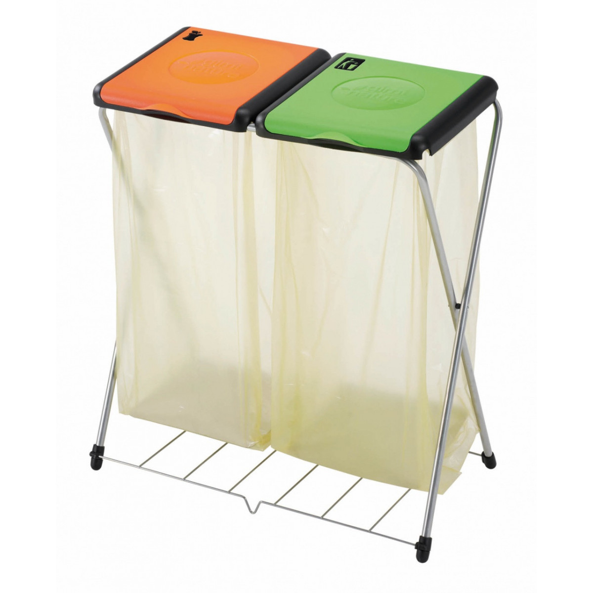 Portarifiuti con 2 coperchi colorati.