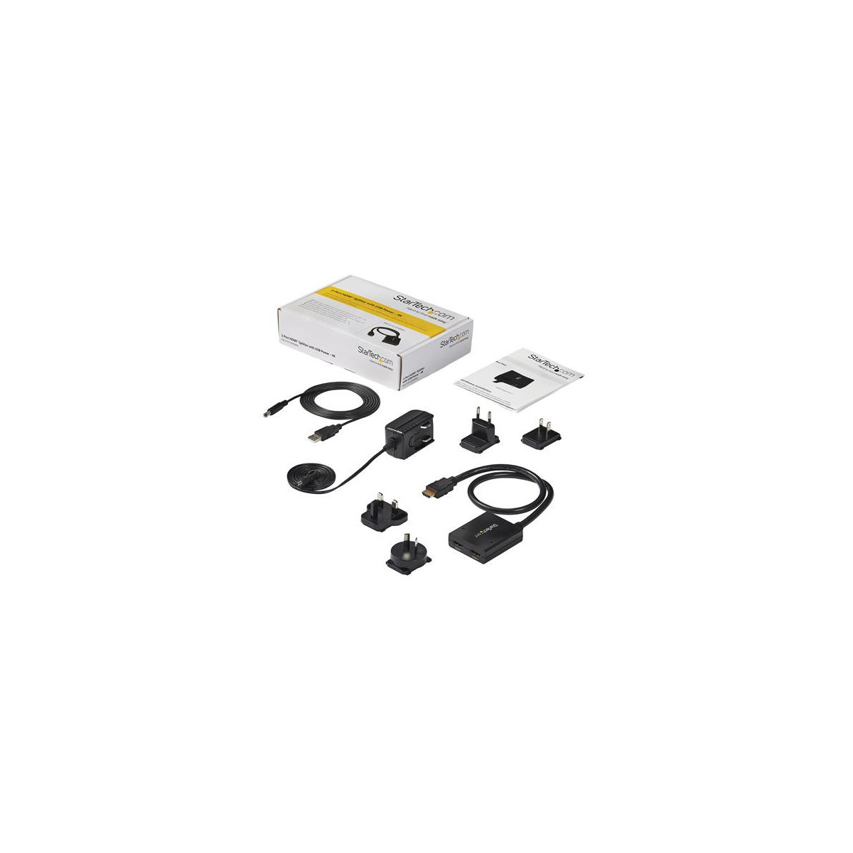 StarTech.com Sdoppiatore Splitter HDMI 4k 30hz 1x2 da 1 a 2 porte Alimentato con Adattatore o USB. Tipo porta video: HDMI, Uscita video: 2x HDMI. Risoluzione massima: 3840 x 2160 Pixel, Colore del prodotto: Nero, Tempo massimo di refresh: 30 Hz. Voltaggio di ingresso: 100-240 V, Corrente d'ingresso: 0.5 A, Voltaggio di uscita: 5 V. Larghezza: 50 mm, Profondità: 620 mm, Altezza: 18 mm. Larghezza imballo: 230 mm, Profondità imballo: 156 mm, Altezza imballo: 56 mm