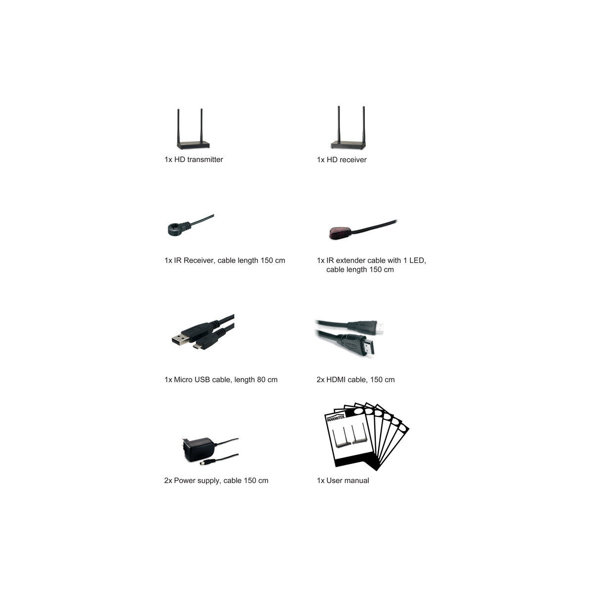 Marmitek 08331. Tipo: Trasmettitore e ricevitore AV, Risoluzione massima: 1920 x 1080 Pixel, Distanza massima di trasferimento: 200 m. Connettore USB: Micro-USB, USB tipo A. Tensione di ingresso AC: 100 - 240 V, Frequenza di ingresso AC: 50 - 60 Hz, Tensione di esercizio: 5 V. Dimensioni (LxPxA): 84 x 140 x 22 mm, Peso: 176 g. Dimensioni imballo (LxPxA): 260 x 185 x 80 mm