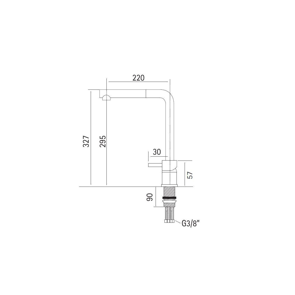Miscelatore lavello cucina sottofinestra con canna a scomparsa e doccetta estraibile in ABS. Canna abbattibile fino a 6cm.