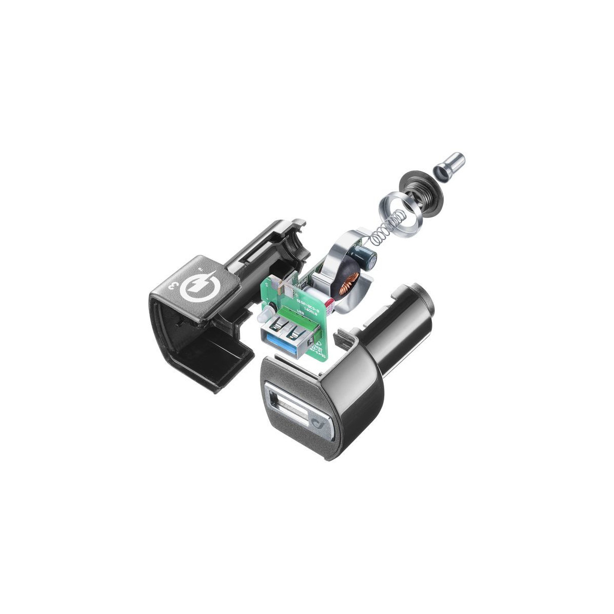 USB CAR CHARGER QC è il caricabatterie da auto perfetto per ricaricare alla massima velocità e in totale sicurezza la maggior parte dei dispositivi di ultima generazione, compresi quelli con tecnologia 1A, da 2A e Qualcomm® Quick Charge™. Il caricabatterie USB CAR CHARGER QC è progettato e realizzato utilizzando tecnologie elettroniche innovative che garantiscono il controllo del surriscaldamento e la protezione da sovraccarichi e cortocircuiti durante tutta la fase di carica. Qualcomm Quick Charge is a product of Qualcomm Technologies, Inc. and/or its subsidiaries. Non esiste alcun tipo di accordo, licenza o legame tra Cellularline S.p.a e le aziende titolari dei marchi e dei nomi riportati nei testi e nelle immagini di questa pagina web. Tutti I marchi, I nomi e i modelli di telefono cellulare sono di proprietà dei rispettivi titolari. Questo prodotto non garantisce la carica veloce per i dispositivi Samsung e i dispositivi Huawei compatibili con la tecnologia “SuperCharge”.