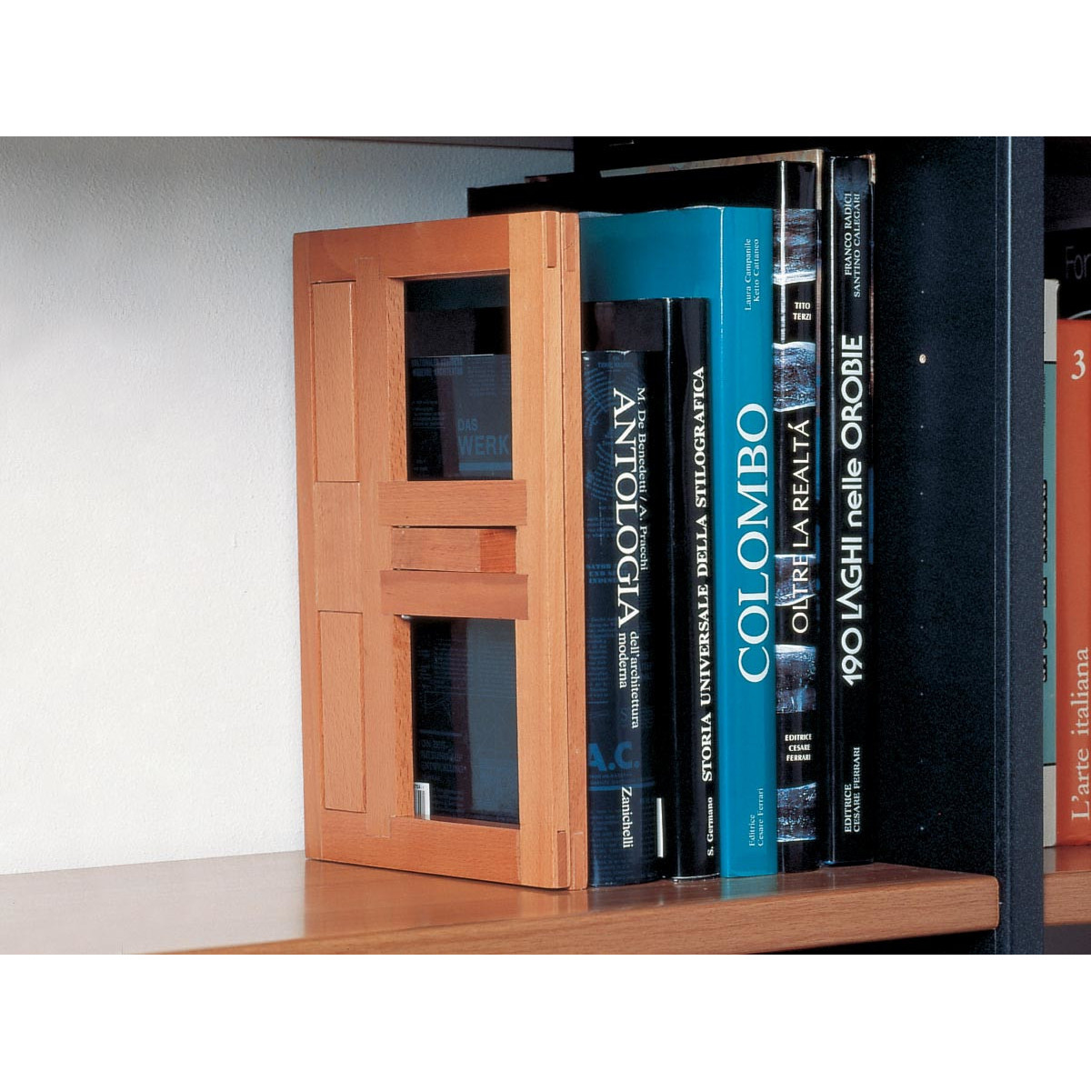 Il leggio chiudibile in legno Reading di Foppapedretti è regolabile a varie altezze e, quando è chiuso, occupa lo spazio di un libro.