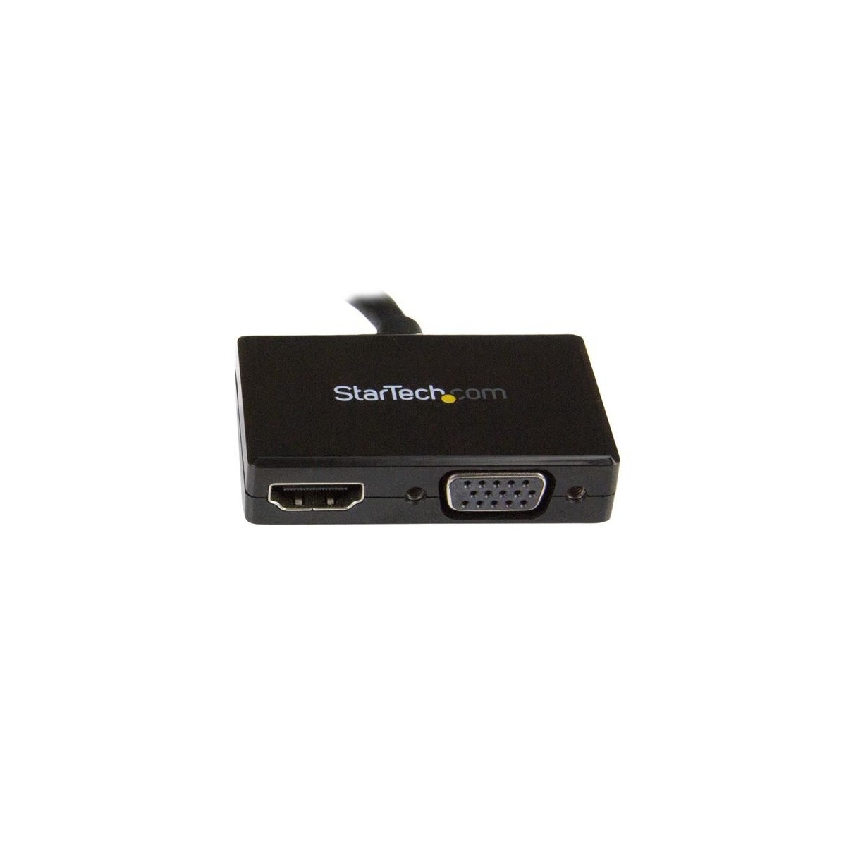 StarTech.com Adattatore DisplayPort a HDMI e VGA - Convertitore audio/video da viaggio DP 2 in 1 - 1920x1200 / 1080p. Risoluzione massima video: 1920 x 1200 Pixel, Modalità video supportate: 1080p. Risoluzione massima: 1920 x 1200 Pixel, Colore del prodotto: Nero, Lunghezza cavo: 0,15 m. Interfaccia host: DisplayPort, interfaccia output: HDMI/VGA. Larghezza: 58 mm, Profondità: 190 mm, Altezza: 13 mm. Larghezza imballo: 200 mm, Profondità imballo: 220 mm, Altezza imballo: 14 mm