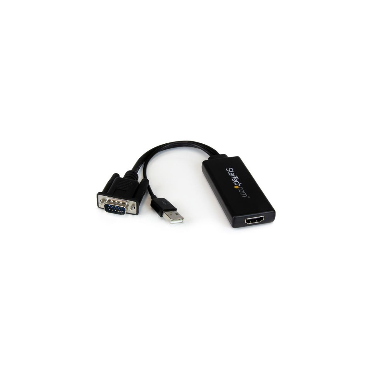 StarTech.com Adattatore Convertitore VGA a HDMI con Audio via USB - Cavo Convertitore Portatile VGA a HDMI - 1080p. Risoluzione massima video: 1920 x 1080 Pixel. Tipo di convertitore: Convertitore video attivo, Risoluzione massima: 1920 x 1080 Pixel, Colore del prodotto: Nero. Interfaccia host: VGA (D-Sub), interfaccia output: HDMI. Larghezza: 12 mm, Profondità: 250 mm, Altezza: 35 mm. Cavi inclusi: USB, Larghezza imballo: 144 mm, Profondità imballo: 173 mm