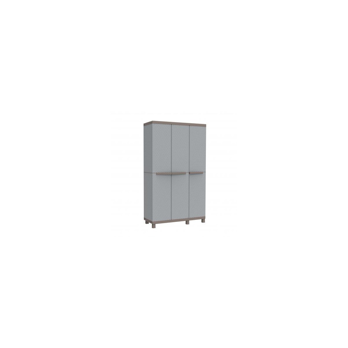 Armadio multifunzionale a tre ante composto da due vani separati con 3 ripiani interni regolabili e 1 appenditutto.