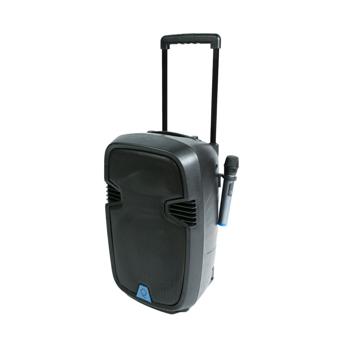 Oqan QLS-12 Travel Speaker. Tipo di speaker: 2-vie, Posizionamento diffusori: Pavimento, Colore del prodotto: Nero. Potenza in uscita (RMS): 150 W, PMPO (Potenza musicale di picco): 300 W, Impedenza: 8 Ω. Tipologia alimentazione: AC, Batteria. Durata batteria: 6 h. Larghezza: 380 mm, Profondità: 300 mm, Altezza: 575 mm