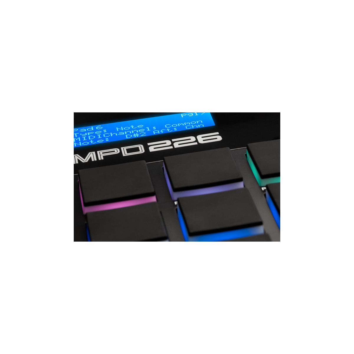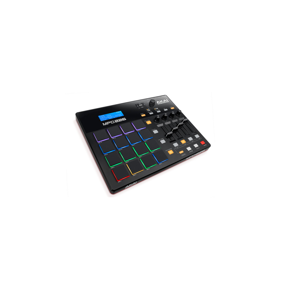 Akai MPD226. Connettore USB: USB di tipo B. Tipo alimentazione: AC, Voltaggio di ingresso: 6 V, Corrente: 1 A. Velocità minima del processore: 1,25 GHz, RAM minima: 1 GB. Larghezza: 333 mm, Profondità: 254 mm, Altezza: 48 mm