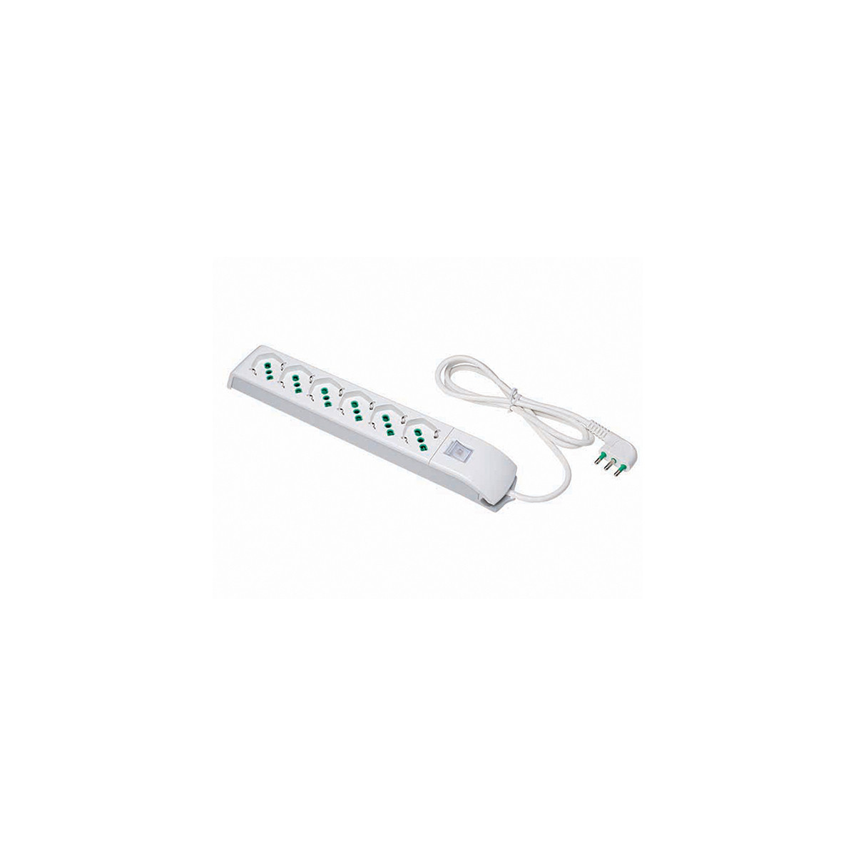 Multipresa a 6 uscite 2P+T 16A Bipasso/St.Tedesco, cavo 1,5m 3G1 H05VV-F spina a squadra italiana 2P+T 16A S17, interruttore bipolare luminoso.
