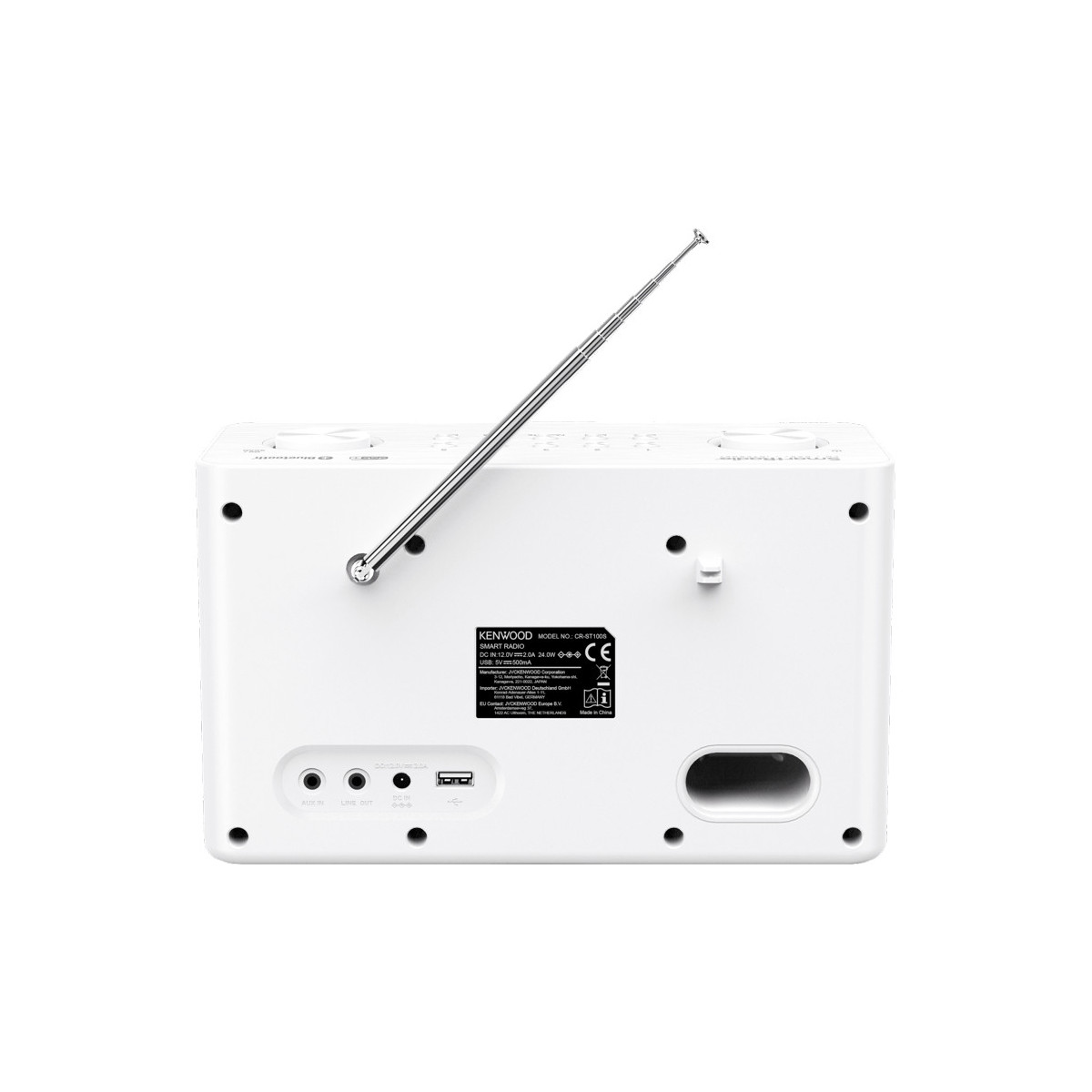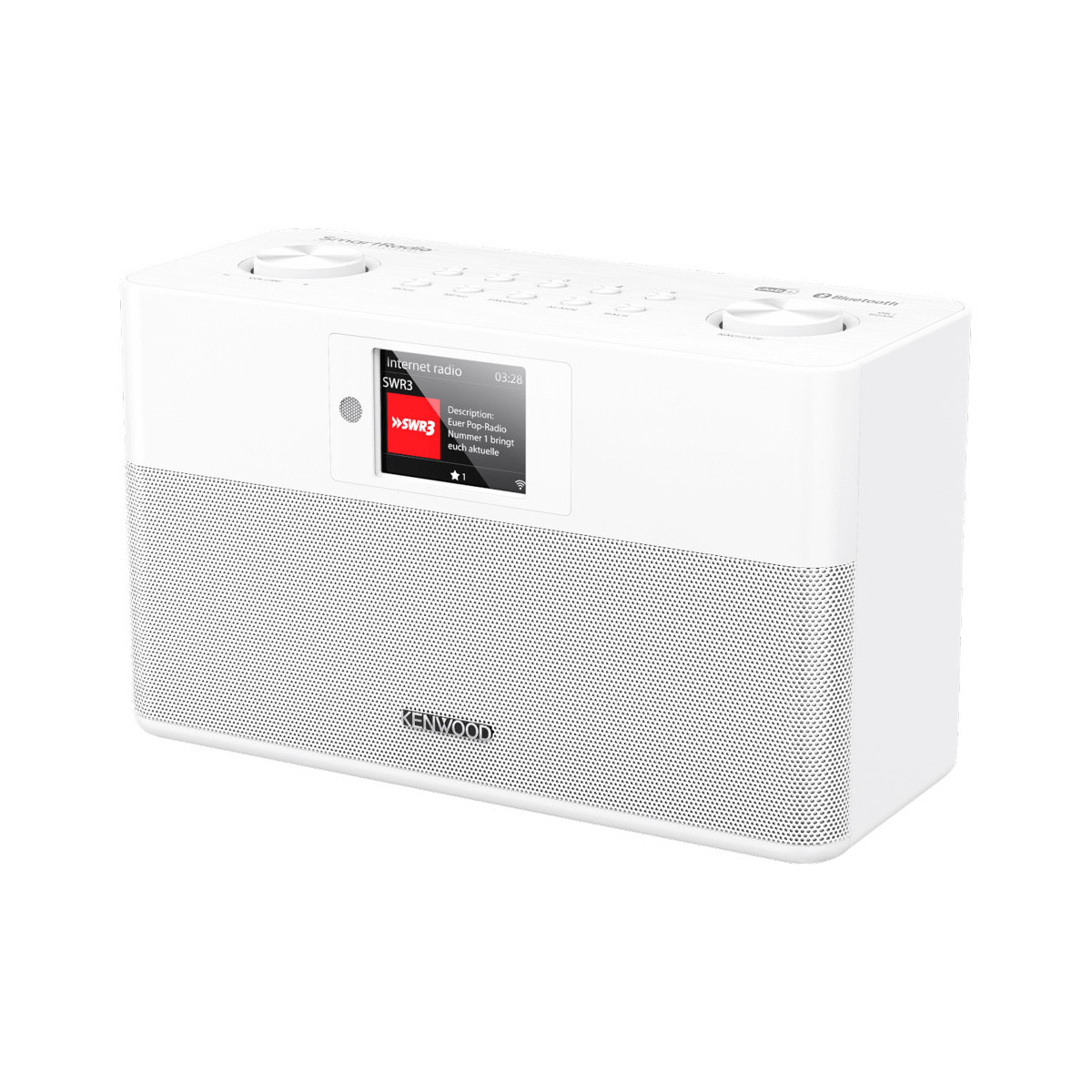Kenwood CR-ST100S-W. Tipo radio: Internet, Bande del sintonizzatore: DAB+,FM, Banda FM: 87.5 - 108 MHz. Potenza in uscita (RMS): 20 W. Tipo di speaker: Range completo. Tipo di display: TFT, Dimensioni schermo: 6,1 cm (2.4"). Standard Wi-Fi: 802.11a,802.11b,802.11g,Wi-Fi 4 (802.11n), Portata Bluetooth: 10 m