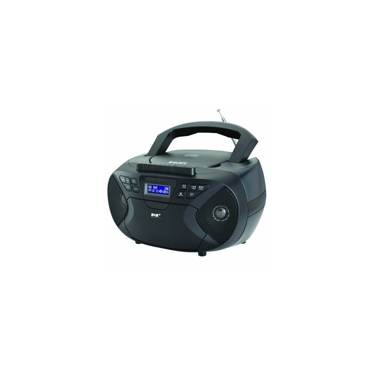 New Majestic AH-2430 DAB. Tipo sintonizzatore: Analogico, Bande del sintonizzatore: DAB,DAB+,FM. Tipo drive ottico: Lettore, Tipi di dischi supportati: CD, Tasti di funzionamento: Riproduzione/Pausa, Skip down, Skip up. Tipo di display: LCD. Colore del prodotto: Nero, Tipo di controllo: Pulsanti, Controllo del volume: Pulsanti. Alimentazione: CA/Batteria, Tensione di ingresso AC: 230 V, Frequenza di ingresso AC: 50 Hz