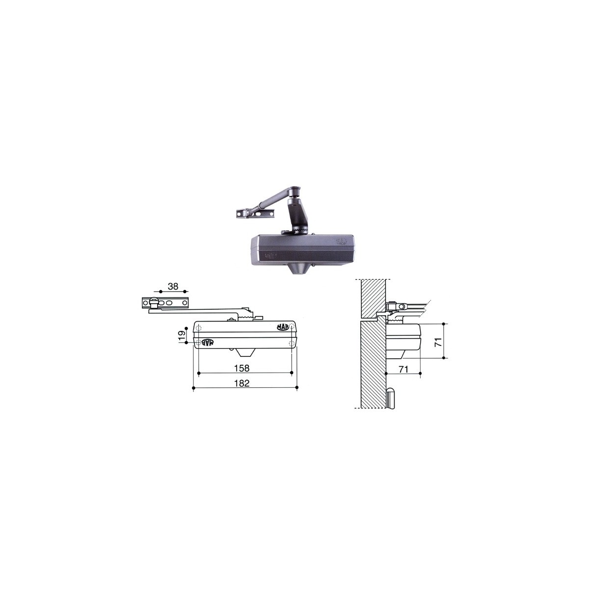 Chiudiporta aerodinamico colore argento per porte a battente fino a 1250 m di larghezza