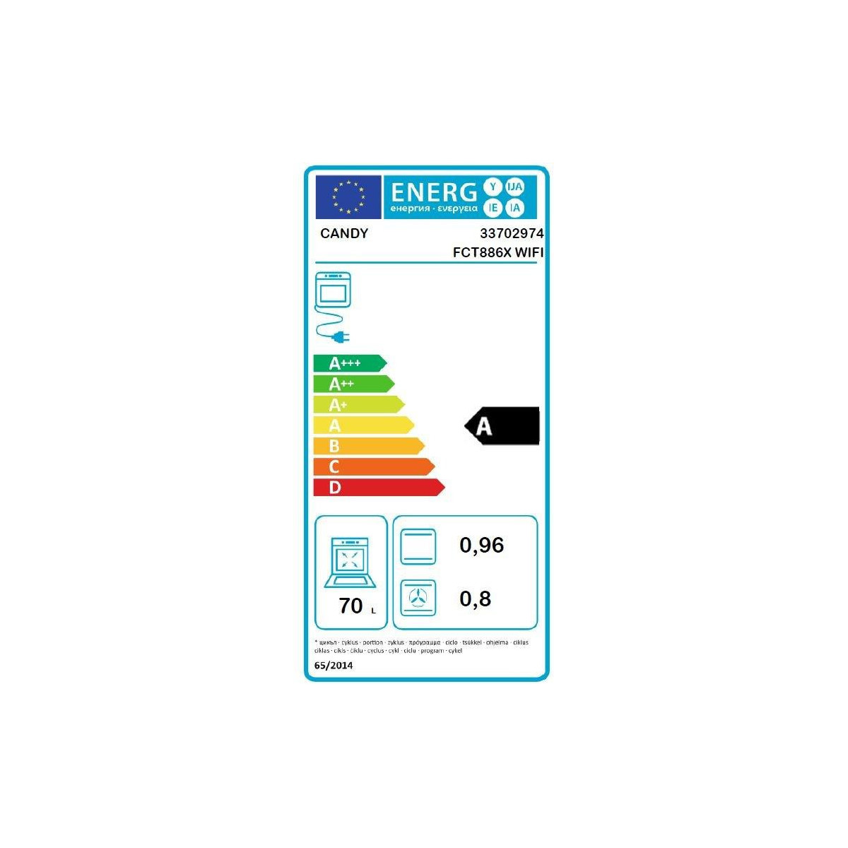 Candy FCT886X WIFI - Forno Elettrico da Incasso, 70 Litri, Inox, Classe A