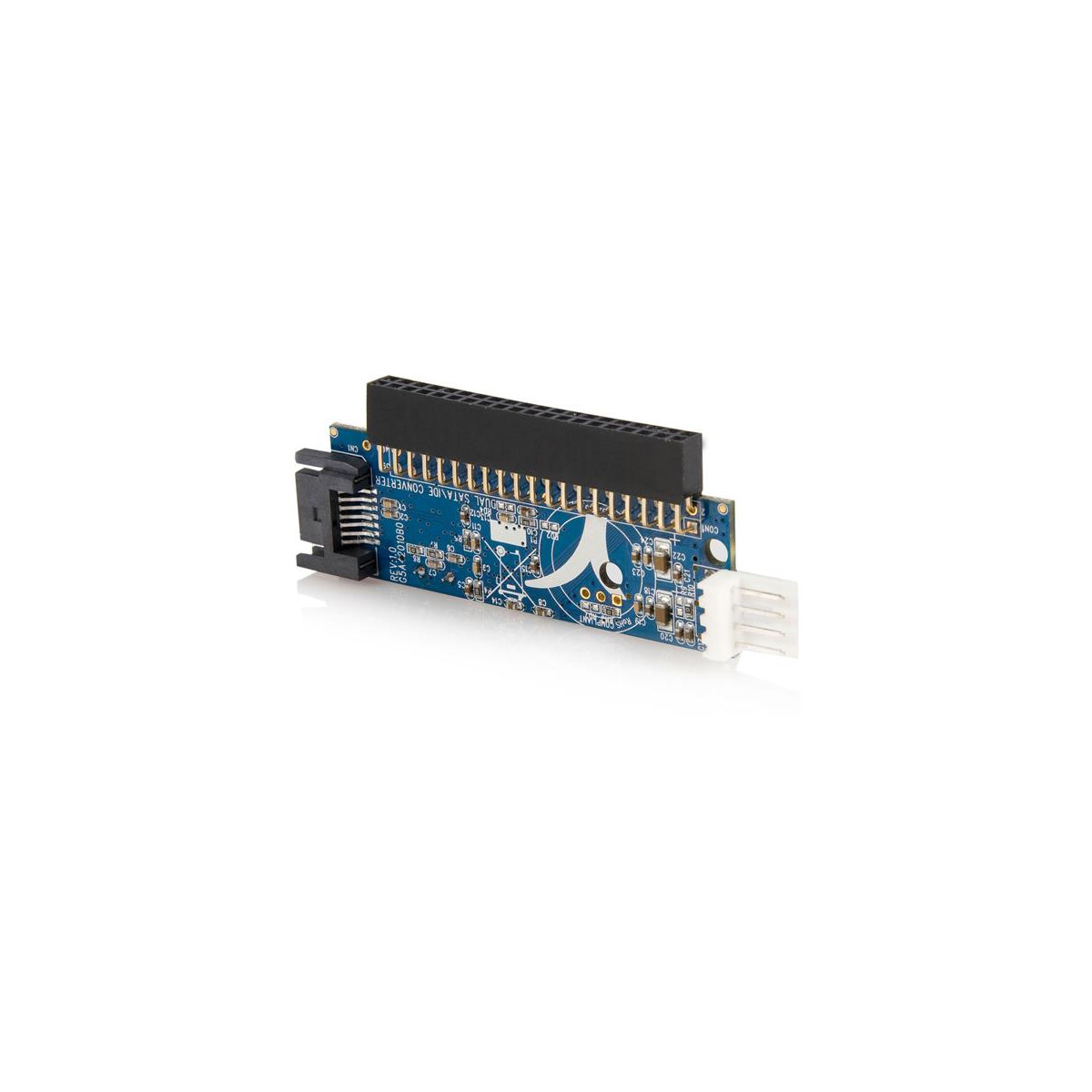 Grazie a questo adattatore IDE a SATA è possibile convertire un connettore IDE 40 pin a uno SATA e connettere un disco SATA (SATA, SATA II/SATA 300) 2,5'' o 3,5'' alla scheda madre invece di un disco IDE.