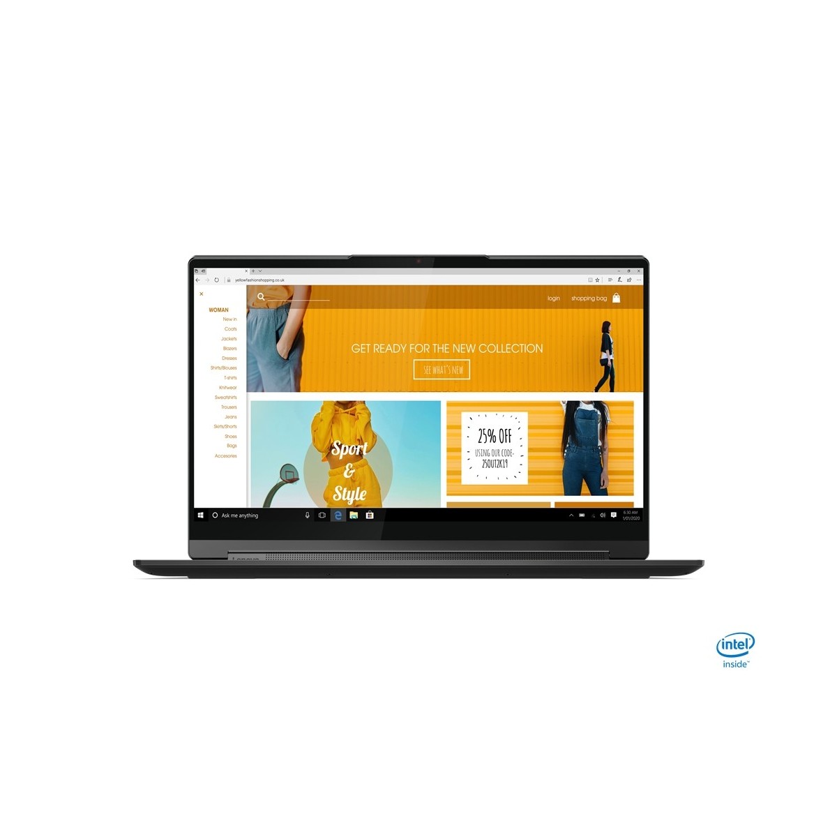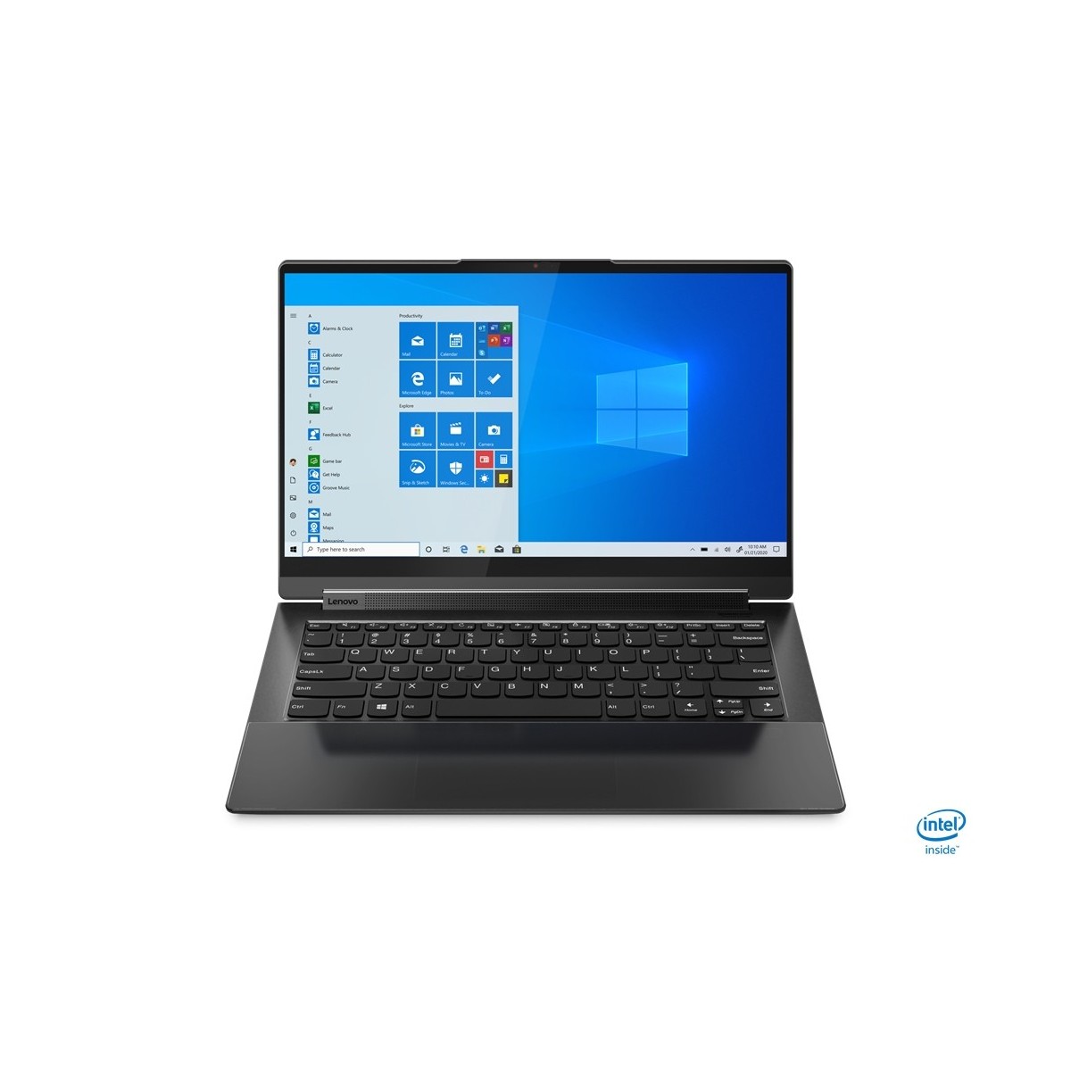 Lenovo Yoga 9. Tipo di prodotto: Ibrido (2 in 1), Fattore di forma: Convertibile (a cartella). Famiglia processore: Intel Core i7-11xxx, Modello del processore: i7-1185G7. Dimensioni schermo: 35,6 cm (14"), Tipologia HD: 4K Ultra HD, Risoluzione del display: 3840 x 2160 Pixel, Touch screen. RAM installata: 16 GB, Tipo di RAM: LPDDR4x-SDRAM. Capacità totale di archiviazione: 1000 GB, Supporto di memoria: SSD. Modello scheda grafica integrata: Intel Iris Xe Graphics. Sistema operativo incluso: Windows 10 Home. Colore del prodotto: Nero