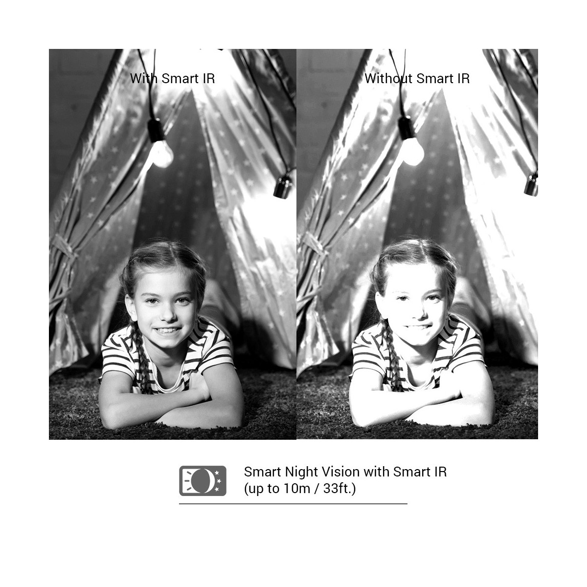 Con il sistema Smart IR, l'intensità dei LED a infrarossi si regola automaticamente per evitare la sovraesposizione in modalità notturna, rilevando più dettagli dell'oggetto o della persona in condizioni di scarsa luminosità.