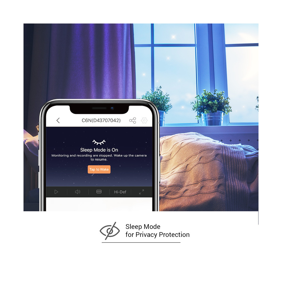 Hai bisogno di privacy? Con un semplice tocco sull'app EZVIZ puoi attivare la modalità di sospensione di C6N, per la massima riservatezza quando ne hai bisogno.