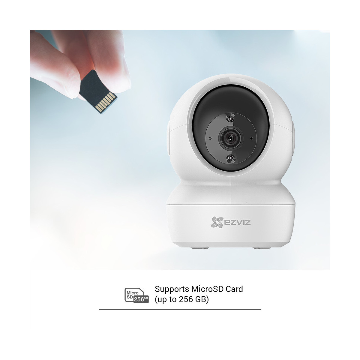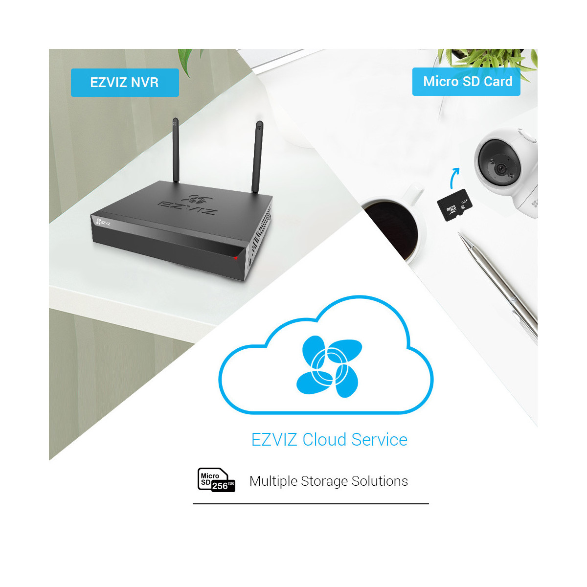 "Salva le tue registrazioni grazie a soluzioni flessibili e sicure. C6N è dotata di uno slot per schede MicroSD integrato, per registrare fino a 256 GB di filmati. Inoltre, puoi salvare le immagini nel Cloud EZVIZ* per avere un'ulteriore copia di back-up."
