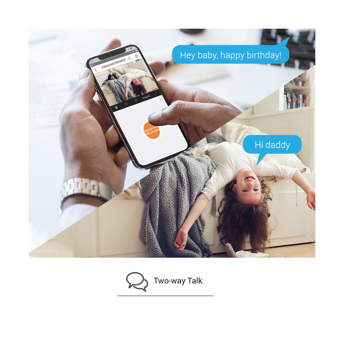 Parla con i tuoi cari o scoraggia gli estranei indesiderati grazie alla funzione di comunicazione bidirezionale di C6N. Utilizzando l'app EZVIZ sul tuo dispositivo mobile, puoi comunicare facilmente e con la massima praticità ovunque tu sia.