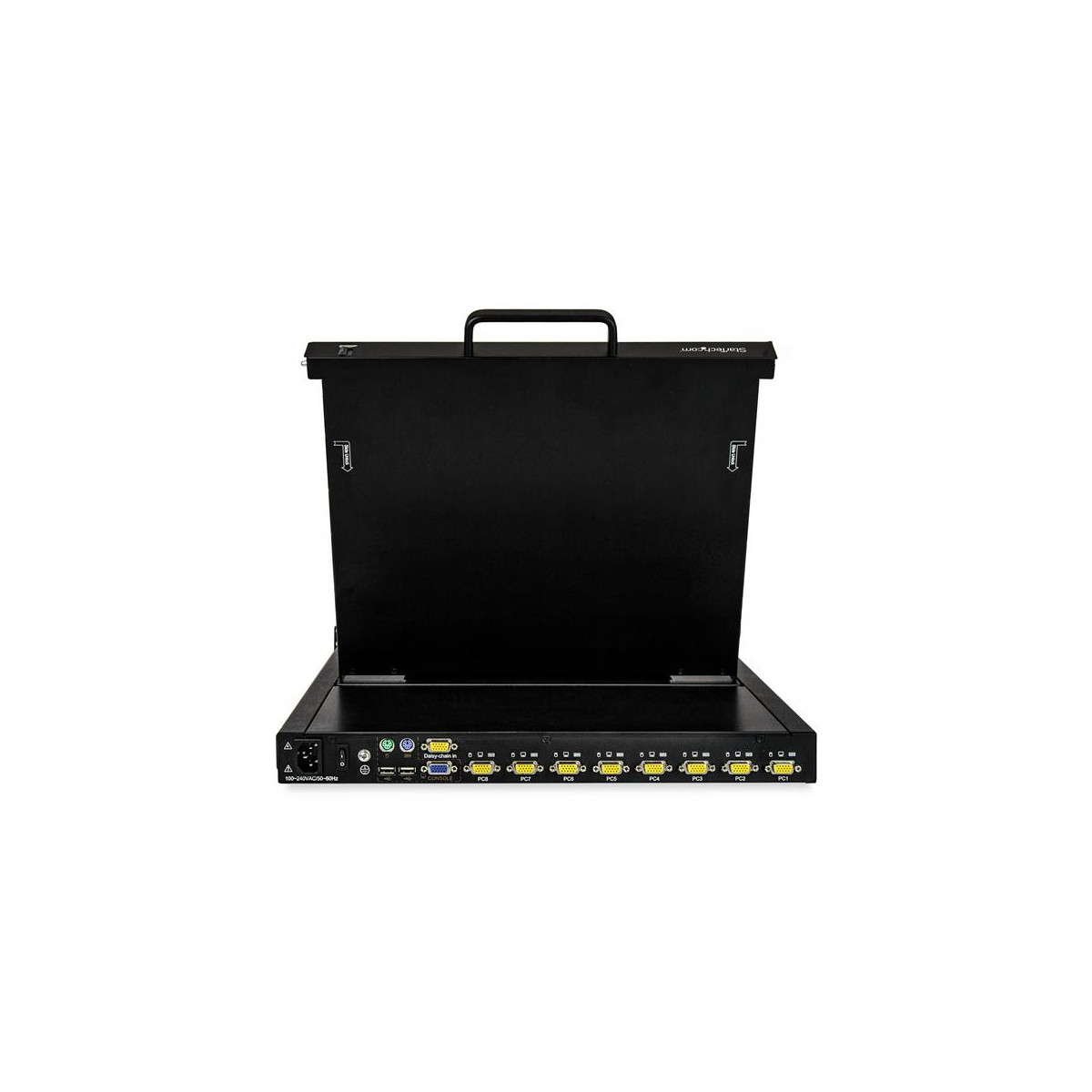 StarTech.com RKCONS1708K. Dimensioni schermo: 43,2 cm (17"), Risoluzione del display: 1280 x 1024 Pixel, Tipologia display: TFT LCD. Tipo di porte tastiera: PS/2, Tipo porta mouse: PS/2, Tipo porta video: VGA. Certificazione: CE, FCC, UL, REACH. Consumi: 13 W, Adattatore di voltaggio input AC: 100 - 240 V, Corrente d'ingresso: 1.5 A. Larghezza: 448 mm, Altezza: 619 mm, Profondità: 43 mm