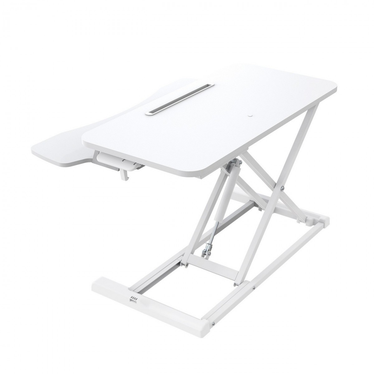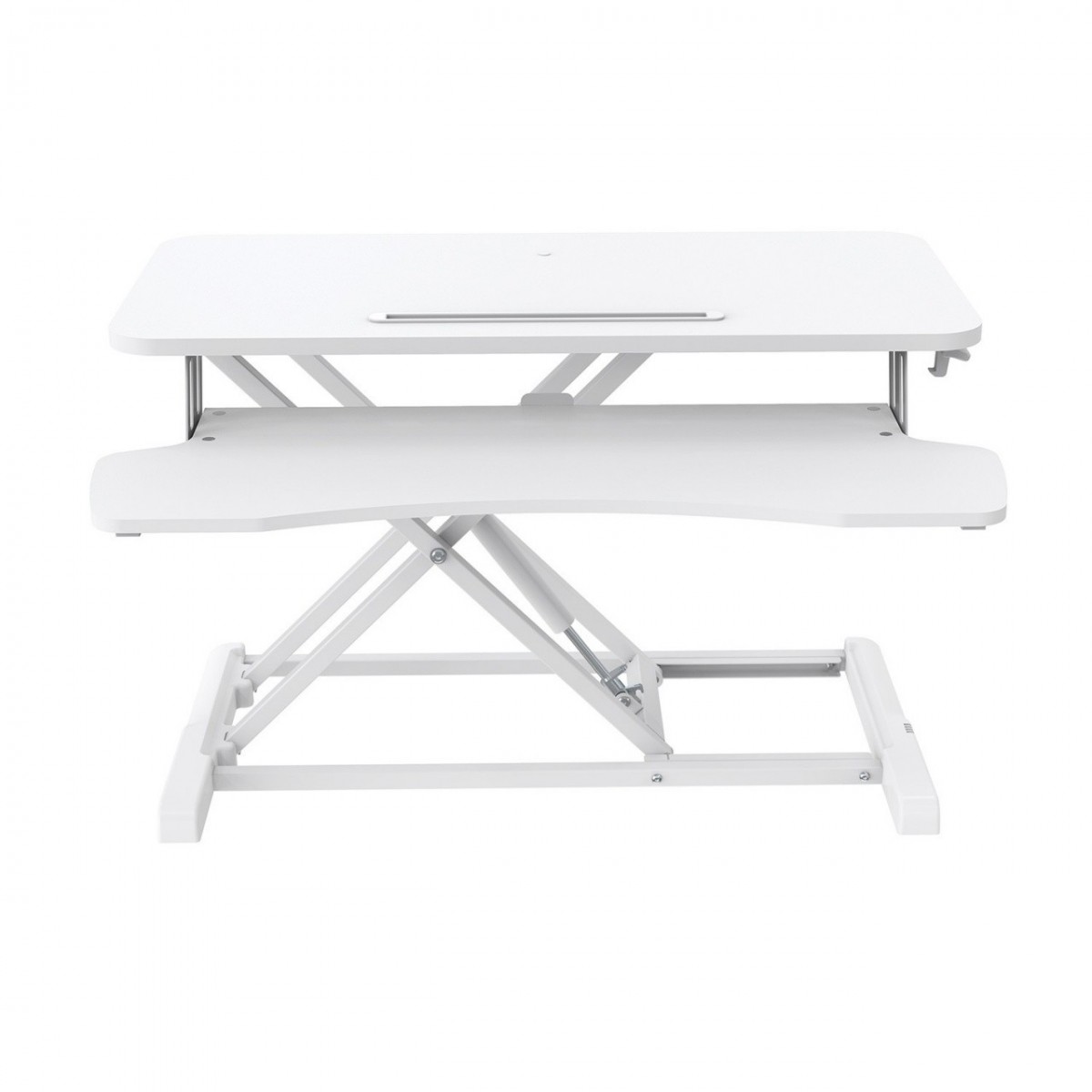 La workstation desktop Essential in piedi/seduti di V7 assicura un modo semplice per passare dalla posizione seduta a quella in piedi alla scrivania. Con una superficie superiore per il display e scrivania inferiore per tastiera e mouse spaziosa. Viene spedita interamente assemblata e non richiede un montaggio per essere installata, rendendo la sistemazione semplice e veloce. È dotata di un meccanismo di sollevamento a molla che permette di passare facilmente da seduti a in piedi in pochi secondi. Grazie alla workstation desktop seduti/in piedi di V7 è facile cominciare ad apprezzare i vantaggi per la salute del lavorare in piedi.