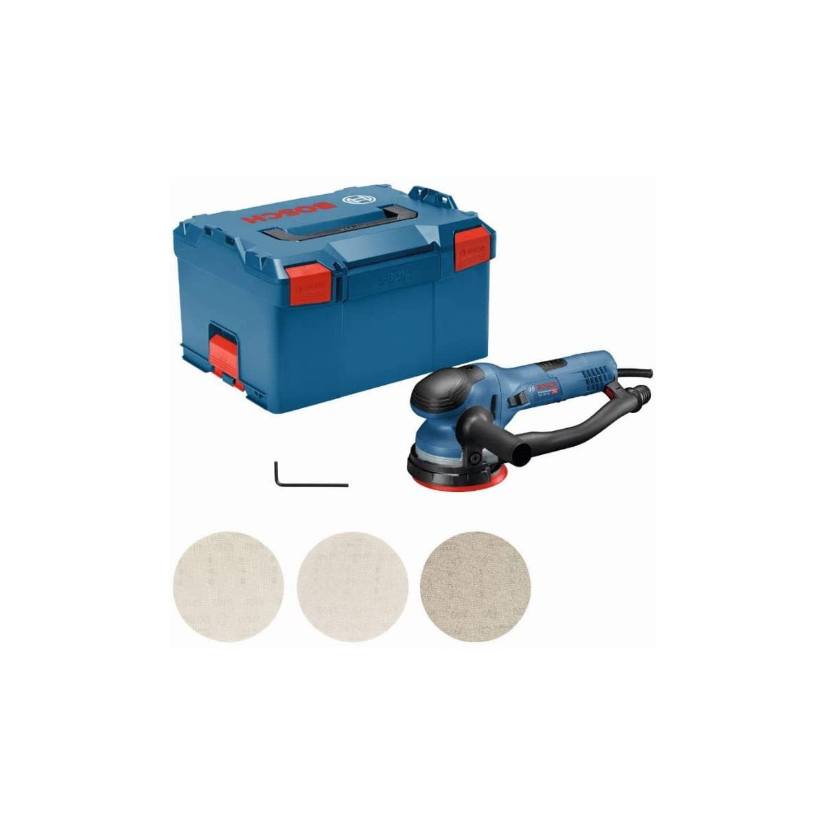 Bosch Professional GET 55-125 - Levigatrice Rotoorbitale, Ø Platorello 125 mm, 15.600 giri/min, 550 W, 3 Fogli Abrasivi, L-Boxx