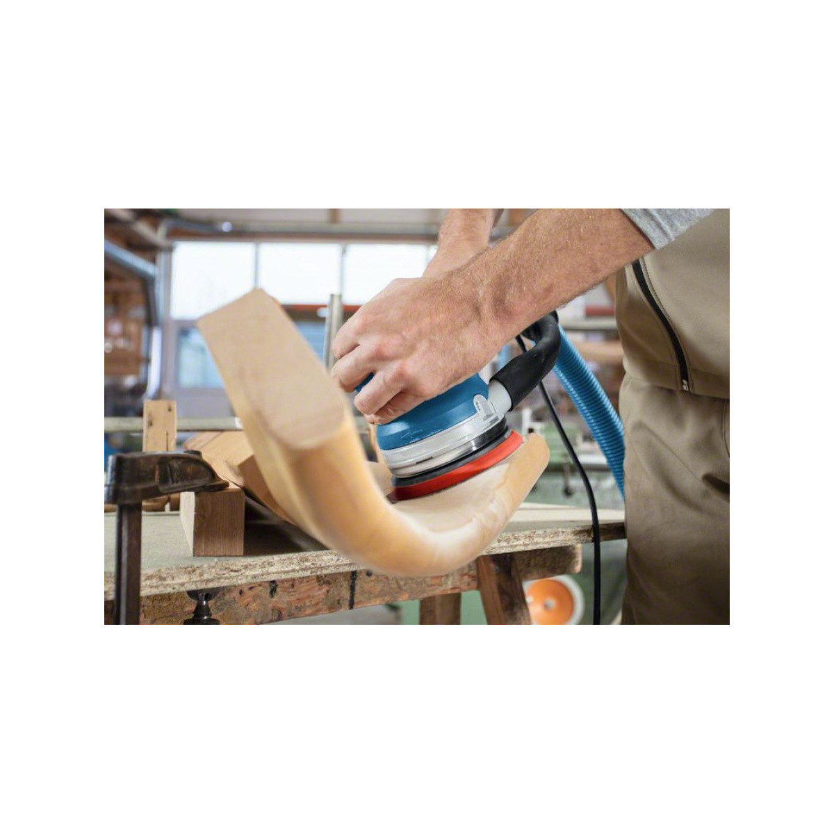 La GET 55-125 offre inoltre numero di giri costante, modalità a comando diretto, protezione per bordi, un platorello da 125 mm con sistema di fissaggio a strappo per fogli abrasivi e preselezione del numero di giri